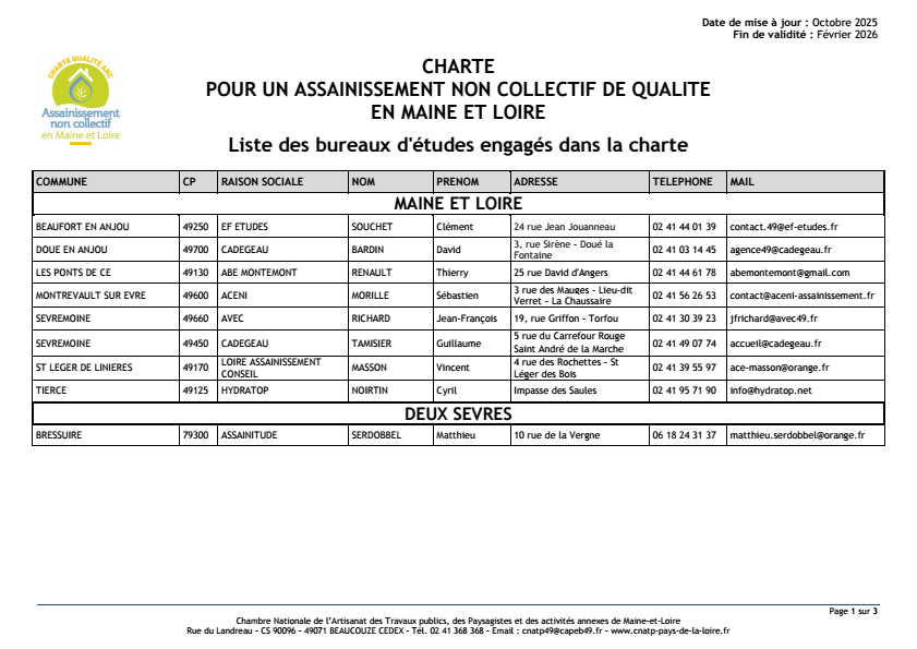 Liste des installateurs